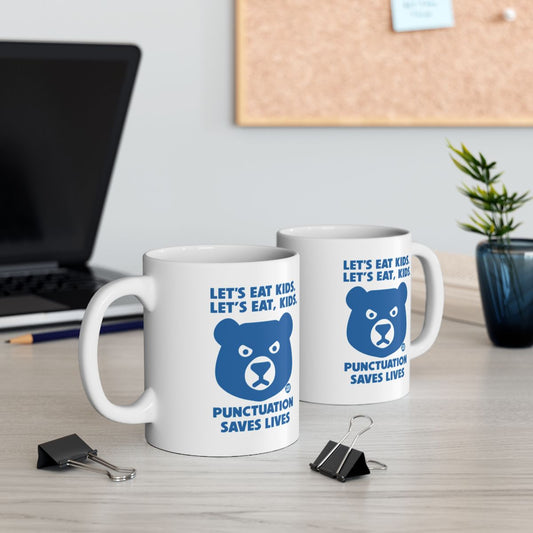 Punctuation Saves Lives Blue Bear Graphic Funny Mugs & Glassware